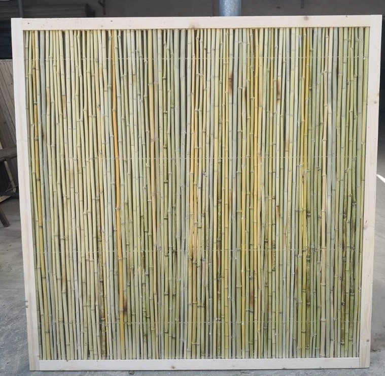 Dit bamboescherm bestaat uit naturel gekleurde bamboestokken (2cm) in een stevig gekaderd Douglas houten frame. Dit bamboescherm is eenvoudig te bevestigen tussen houten palen of betonpalen. Dit product is gemaakt van Moso bamboe, en is van nature naturel gekleurd. het product is rechtstreeks ingekocht bij de bron.