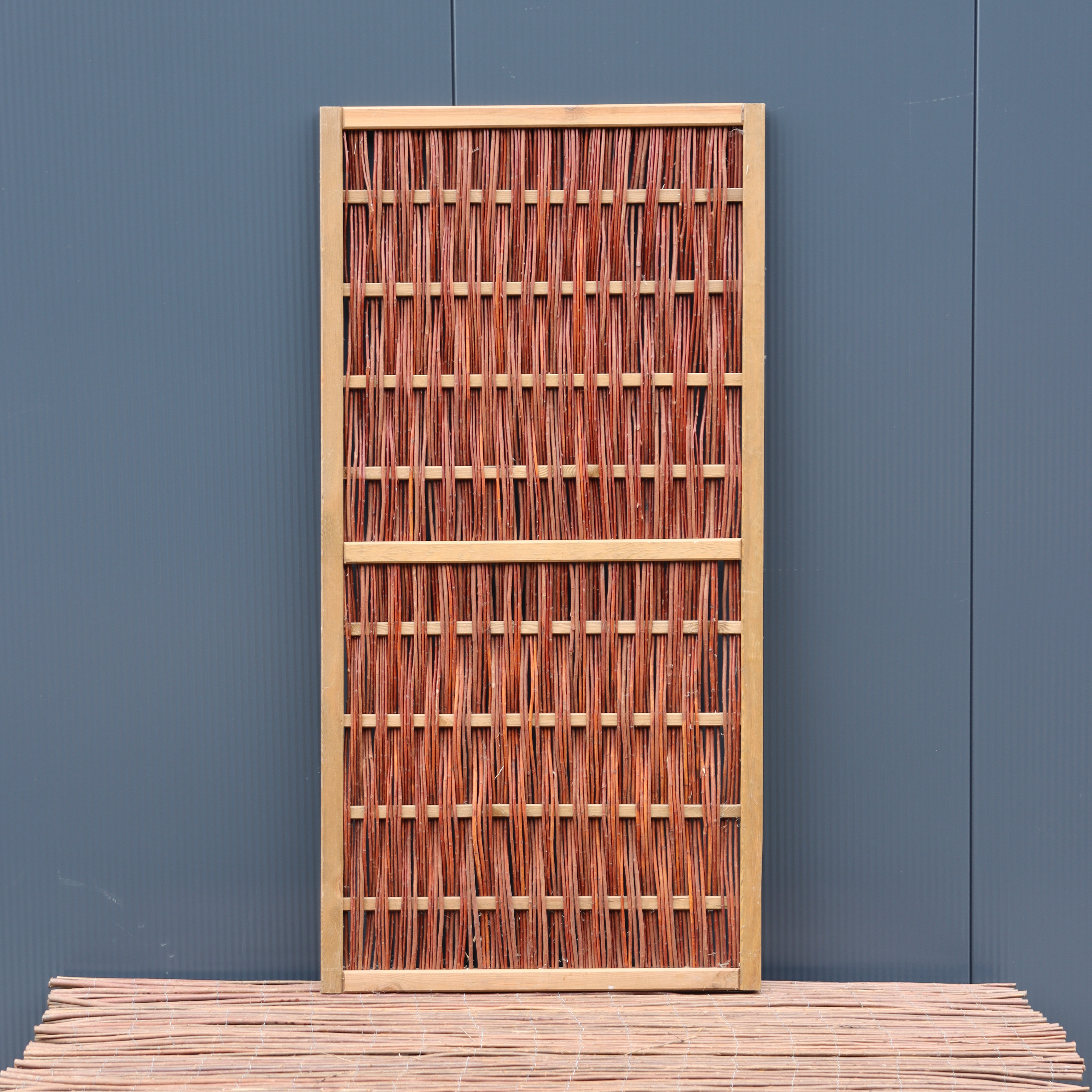 Wilgenschuttingen hebben een chique uitstraling. De schuttingen zijn gemaakt van lichtgekleurde wilgentenen van hoogwaardige kwaliteit. Deze wilgenschuttingen zijn een natuurproduct en dus onbehandeld. De wilgenschutting premium is gemaakt van gevlochten wilgenteen en een verduurzaamd geschaafd grenen kader van 3x4,5 centimeter dik. De wilgentakken worden zo strak mogelijk gevlochten in het houten kader, dit geeft het wilgenschutting Premium een hoogwaardige uitstraling. De wilgenschutting is door zijn houten frame gemakkelijk te bevestigen tussen houten palen, zorg ervoor dat je voorboord, anders kan het hout gaan splijten. Het is ook mogelijk om de schutting tegen een gaasmat of een al bestaande schutting te plaatsen. Heb je vragen over het plaatsen van de wilgenschutting? Neem dan contact met ons op